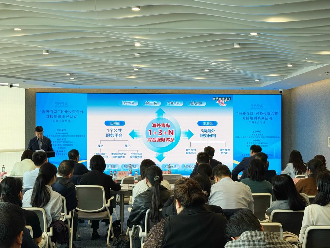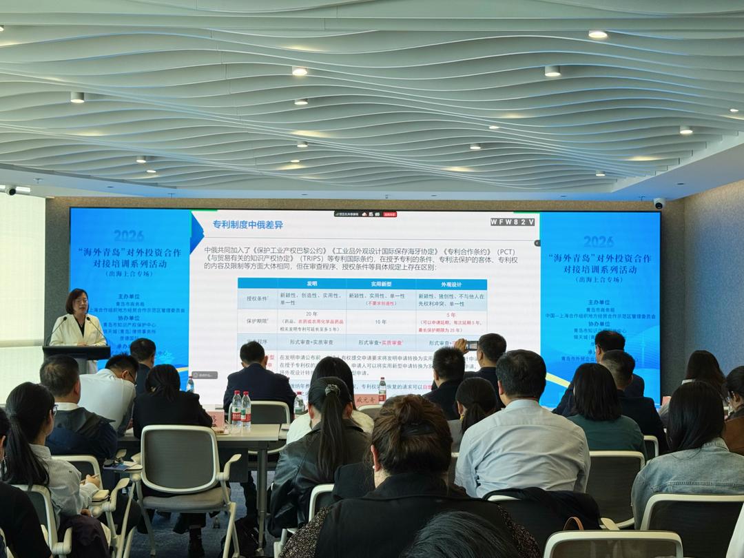 为深入贯彻落实青岛市《关于进一步完善“海外青岛”综合服务体系的行动计划》(“海外青岛20条”),助力企业高质量“走出去”,2026年4月15日下午,“海外青岛”对外投资合作对接培训系列活动(出海上合专场)在青岛海天中心成功举行。本次活动由青岛市商务局、上合示范区管委主办,青岛外贸赋能中心承办,青岛市知识产权保护中心、锦天城(青岛)律师事务所、彦德国际协办,汇聚政府、专业机构及海外服务中心力量,为企业赴阿联酋、俄罗斯、柬埔寨等上合组织国家投资合作提供全方位赋能。