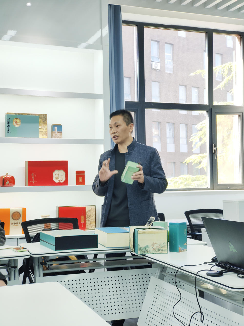 同样的故事,还发生在山东工艺美术学院与山东新佳怡包装有限公司之间。这家主营茶叶外包装的企业,过去每年都要花钱从南方买设计方案。2023年,在大学城管委会牵线下,企业与山东工艺美术学院视觉传达设计学院签约共建实验室。教师吴瑶全程参与了五轮共建课程:“企业提供课题,我们师生和企业技术人员一起做设计、定工艺,直到量产。”