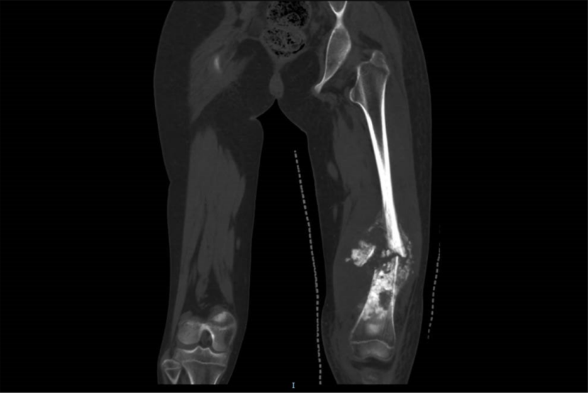 今年年初,活泼好动的小鱼出现大腿酸痛肿胀,起初家长误以为是“生长痛”或运动损伤。然而一个月后,小鱼腿部肿胀加剧,当地医院影像学检查提示股骨下段恶性肿瘤,穿刺活检确诊为骨肉瘤。因患儿年龄小、化疗与手术风险高,家人辗转多家医疗机构后,最终来到烟台山医院骨病与骨肿瘤科寻求治疗。
