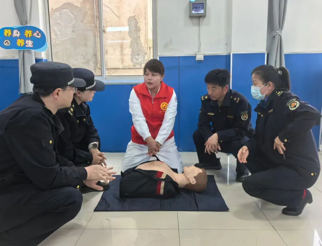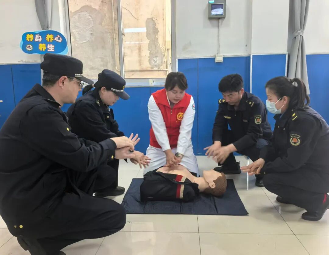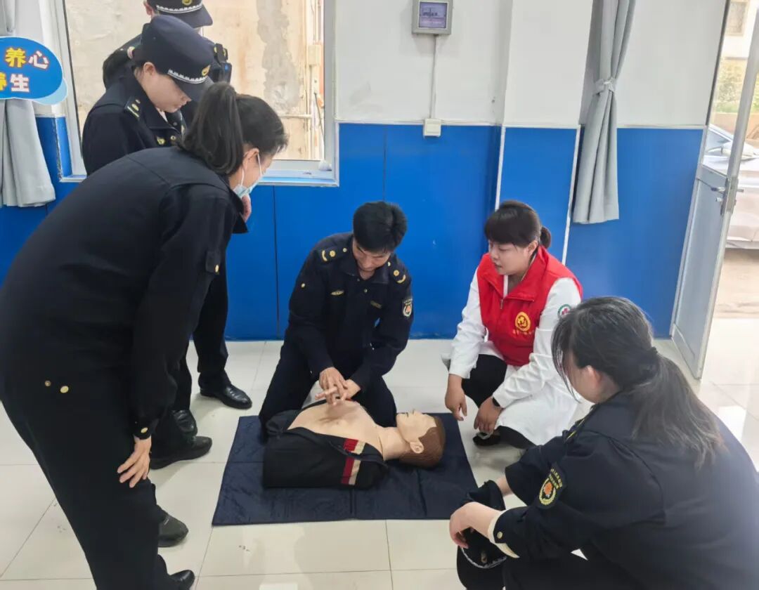 莲子心志愿服务队队长殷雪华现场开展心肺复苏实操教学,通过手把手示范、一对一指导,细致拆解急救操作流程与核心要点,帮助一线执法人员熟练掌握实用应急救护技能,全面提升日常执勤过程中的健康安全防护能力。