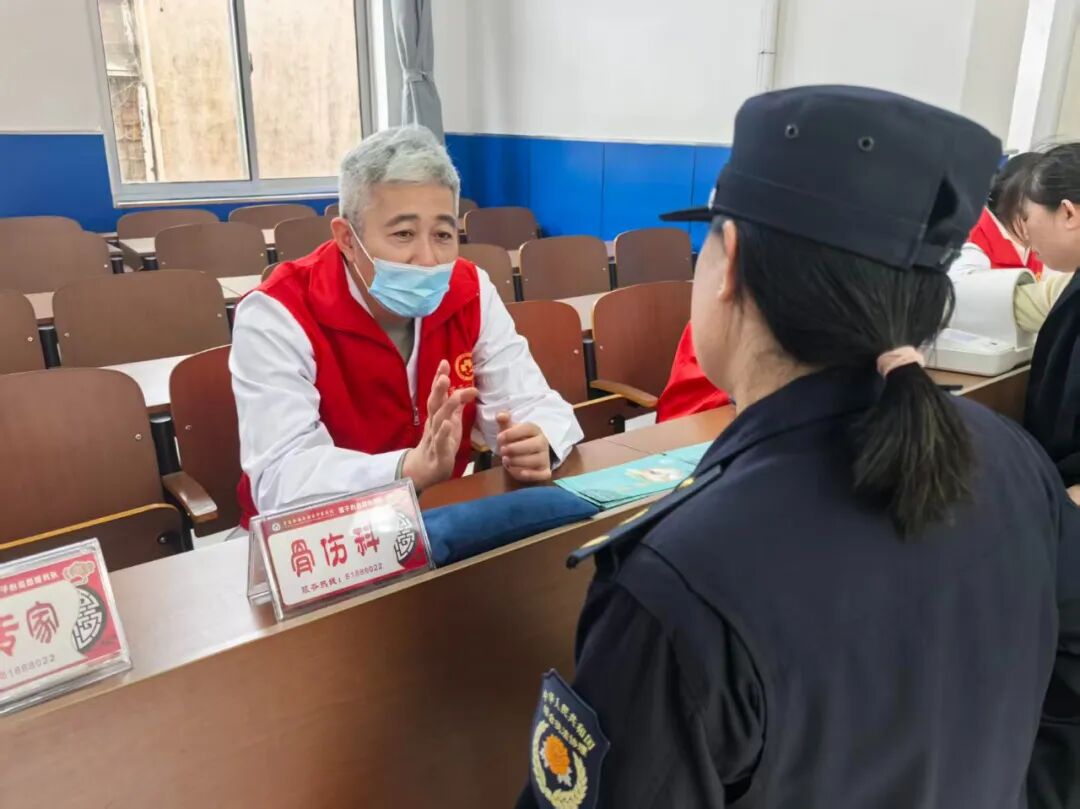 义诊咨询区内,各科室专家结合执法人员职业特性,通过中医“望闻问切”四诊合参,为在场人员逐一进行辨证问诊,针对性解答颈肩腰椎劳损、风湿关节不适、高血压、妇科健康、睡眠障碍、脾胃虚弱等常见职业健康问题。