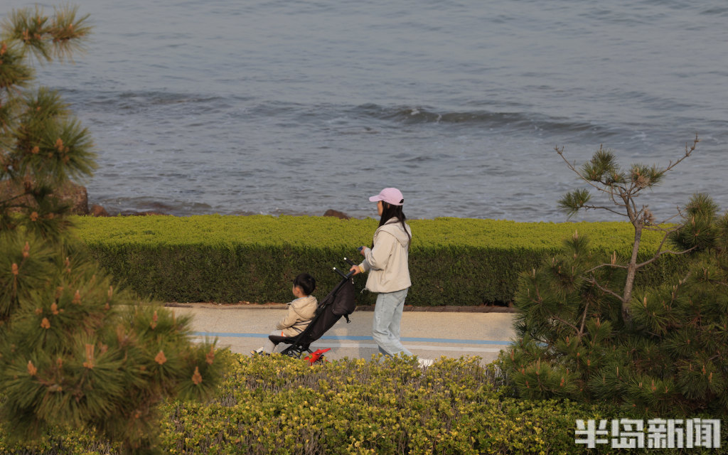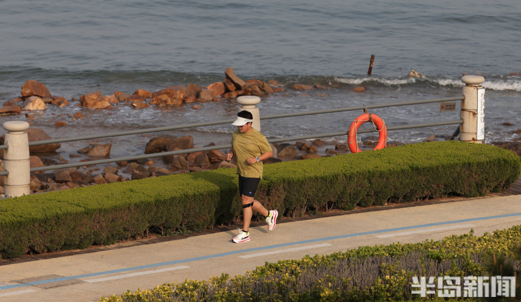 4月16日清晨5时许,青岛沿海一线风光旖旎。不少市民来到海边骑行、晨练跑步。当日岛城气温快速攀升,最高气温达28摄氏度,温暖舒适的天气也吸引了众多游客前来,欣赏迷人的海滨景致。(半岛全媒体记者何毅)
