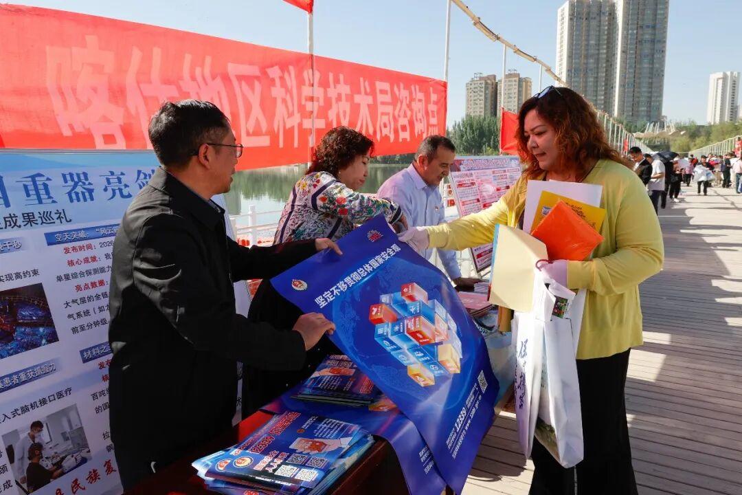 在喀什地区总体国家安全观主题公园开放日活动现场,工作人员为市民宣传讲解国家安全知识。喀什地区融媒体中心 记者侯立超 摄