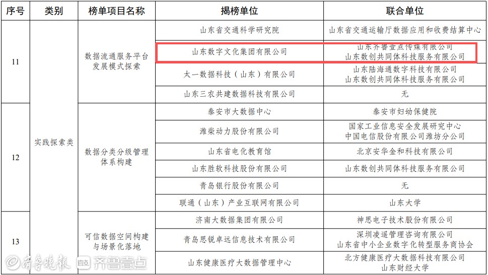 4月14日,山东省大数据局公布2026年全省数据要素市场化配置改革“揭榜挂帅”名单。由山东数字文化集团建设的山东文化数据交易平台成功入选。