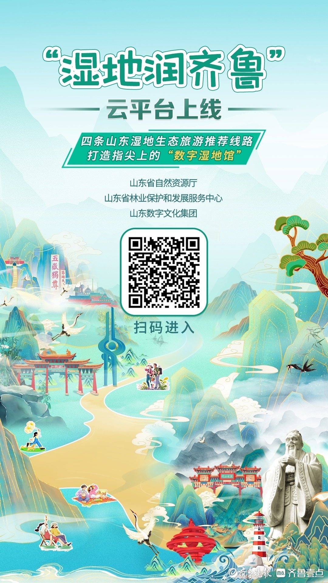 2026年4月13日至19日,山东迎来第二个湿地保护宣传周。本届宣传周期间,由山东省自然资源厅、山东省林业保护和发展服务中心、山东数字文化集团共同制作的山东省湿地生态旅游推荐线路正式发布,涵盖泉湖山岳·齐风鲁韵人文线、拥海踏浪·胶东半岛风情线、烟雨荷香·红色沂蒙研学线、大河之洲·黄河入海奇观线。同时,“湿地润齐鲁”云平台同步上线,打造指尖上的“数字湿地馆”,如同一份“齐鲁湿地诗意地图”,方便公众随时随地了解湿地、游览湿地。
