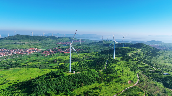 风力发电机迎风矗立,绘就绿色能源发展新图景