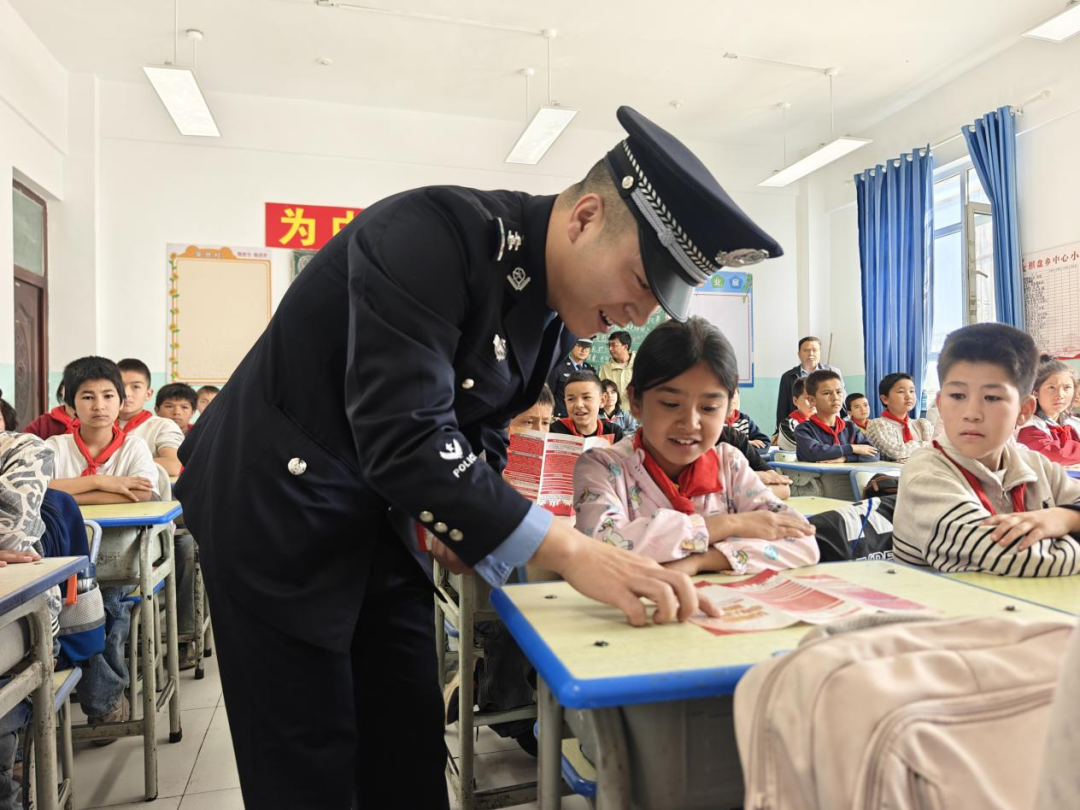 4月15日,喀什边境管理支队棋盘边境检查站的移民管理警察走进棋盘乡中心小学,以“宣讲+课堂”的形式,为全校师生带来了一场生动的国家安全主题课。娜孜热娜 摄