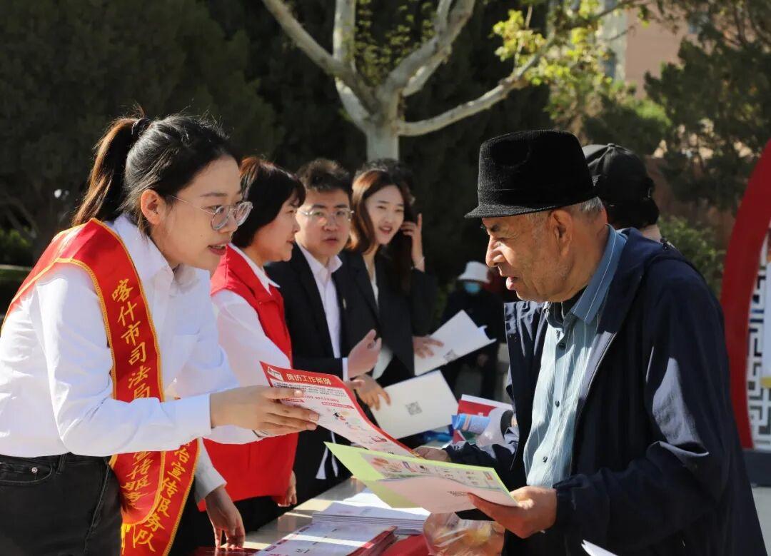 4月15日,在喀什市人民公园西门,工作人员向市民宣讲国家安全教育相关知识。喀什地区融媒体中心 实习记者尉旭升 摄