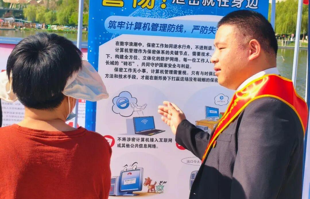 4月15日上午,喀什地委机要保密局在喀什市总体国家安全观主题公园(东湖公园)开展保密宣传。喀什地委机要保密局 供图