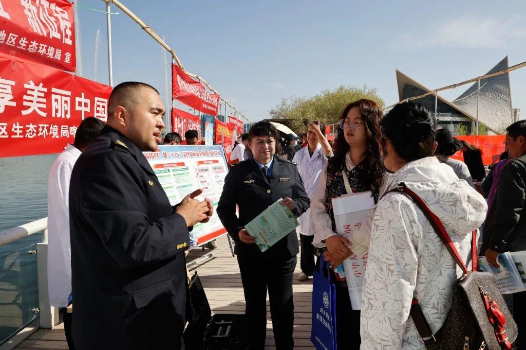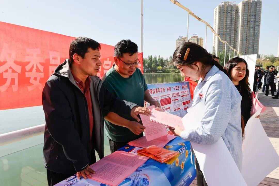 4月15日,在喀什市东湖公园举办的喀什地区总体国家安全观主题公园开放日活动中,工作人员向市民讲解国家安全知识。喀什地区融媒体中心 记者侯立超 摄