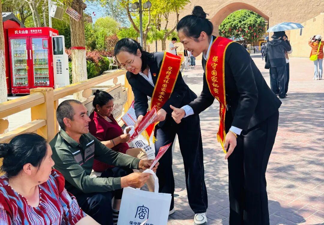 喀什地委机要保密局联合地区团委组织志愿者在喀什古城开展保密宣传活动,走进沿街商户、面向过往游客,发放保密宣传资料、定制宣传手提袋等。喀什地委机要保密局 供图