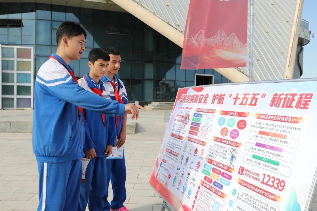 在喀什市东湖公园,学生学习相关国家安全知识。 喀什地区融媒体中心 实习记者尉旭升 摄