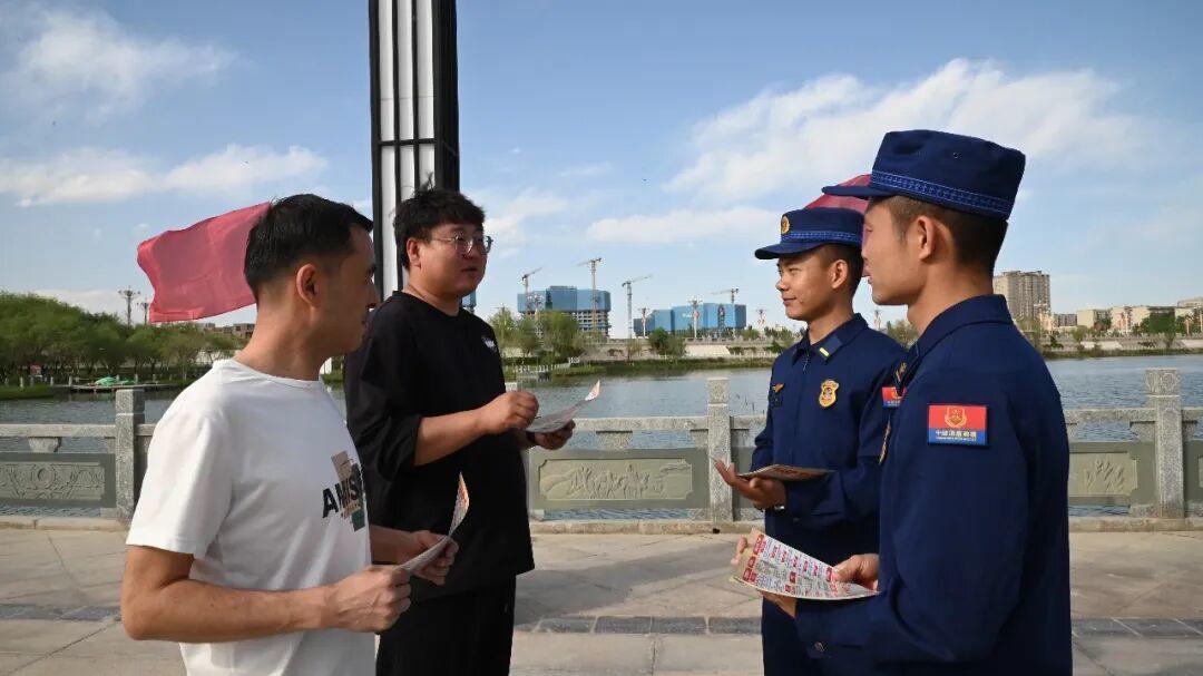在喀什市总体国家安全观主题公园,消防宣传员给市民普及消防知识。喀什地区融媒体中心 记者张吾乐 摄
