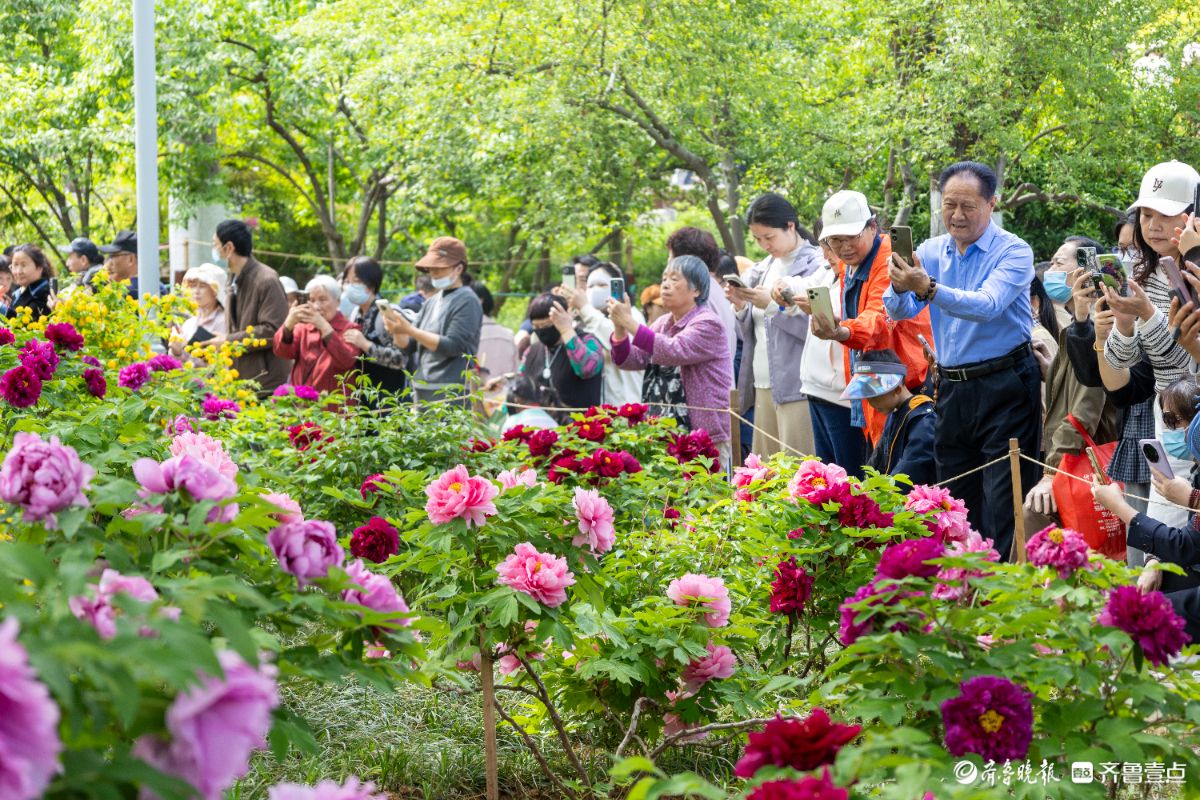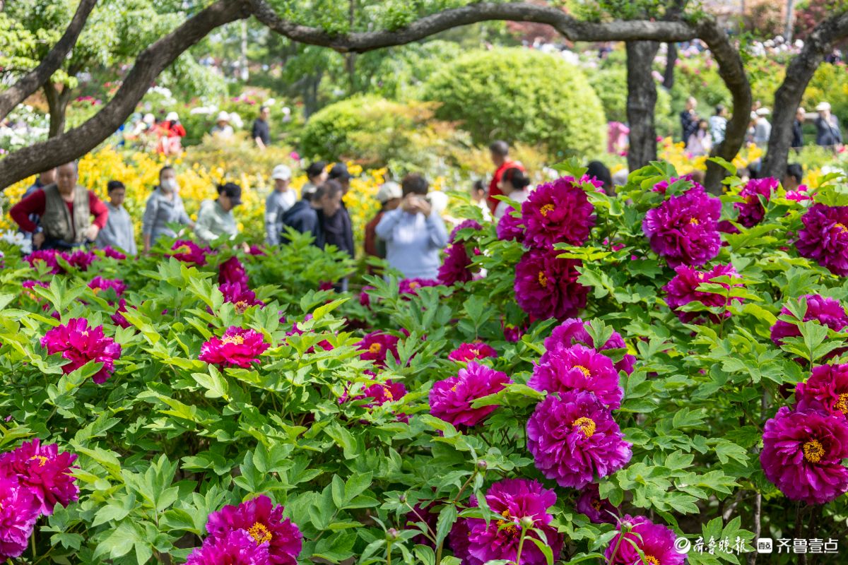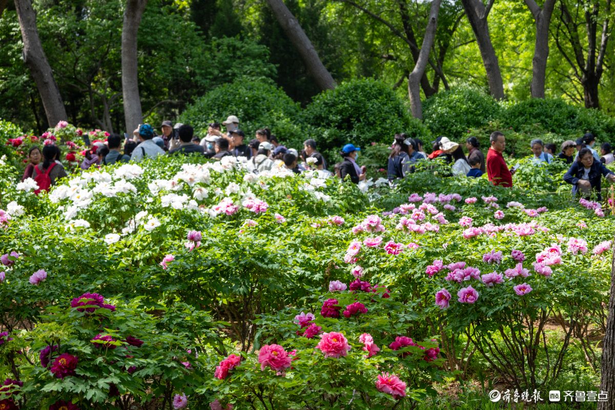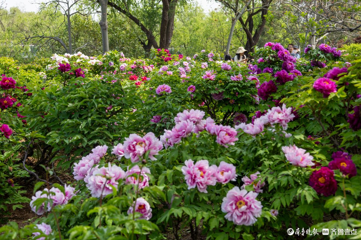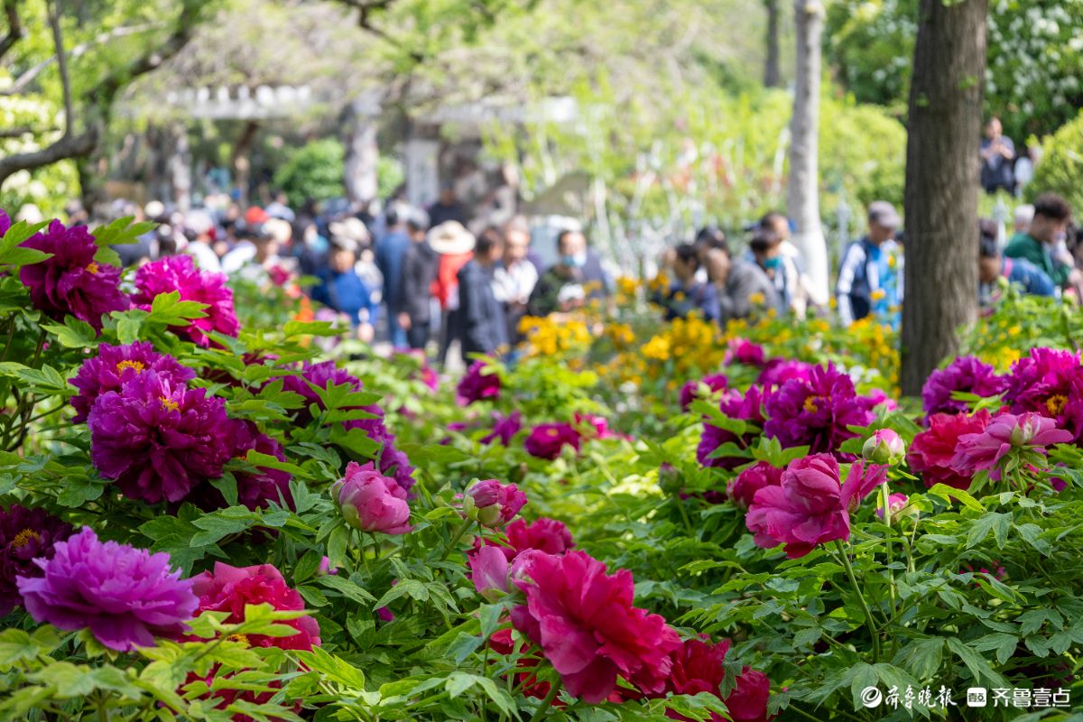 泉城公园牡丹园牡丹花正处盛放期,引来市民游客前往打卡