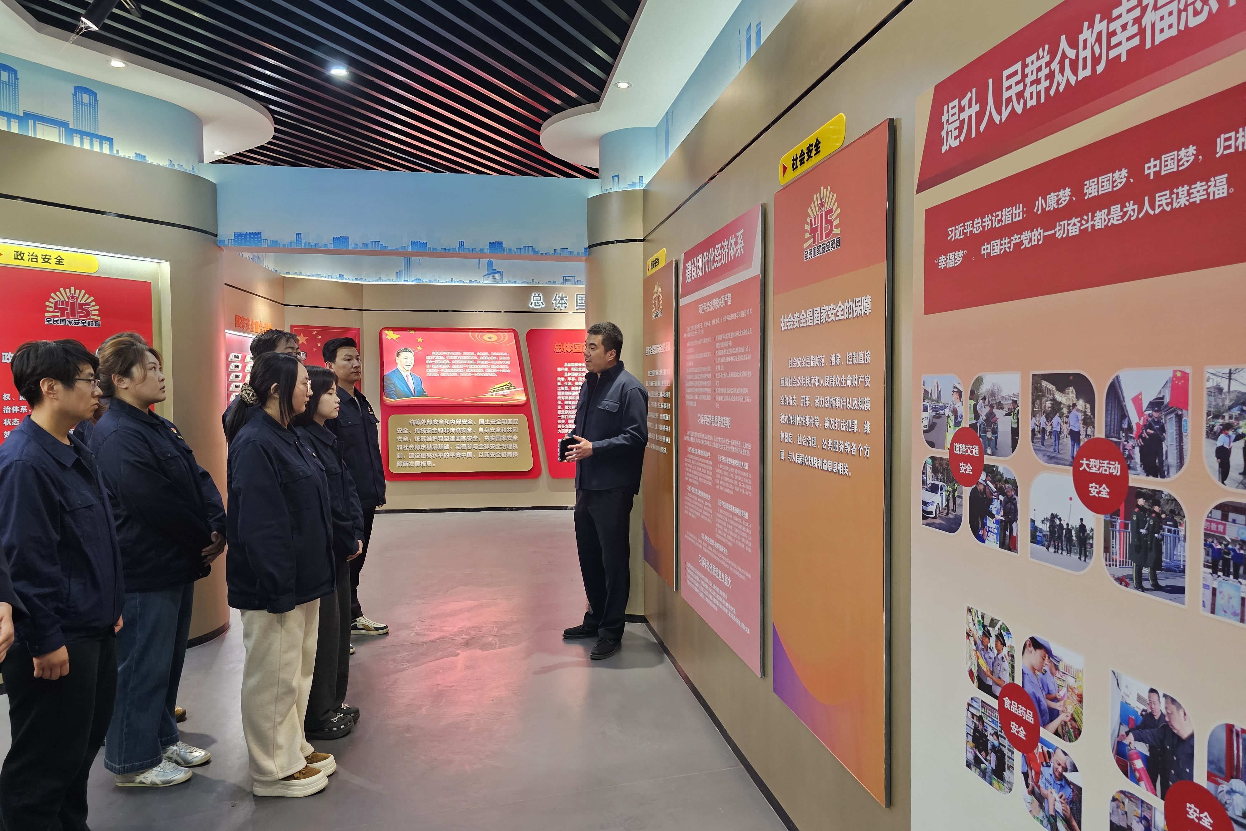 随后,一行人员前往总体国家安全观展馆参观学习。馆内丰富的图文资料、生动的场景展示、翔实的案例解读,系统展现了总体国家安全观的发展脉络、核心要义与实践成果。