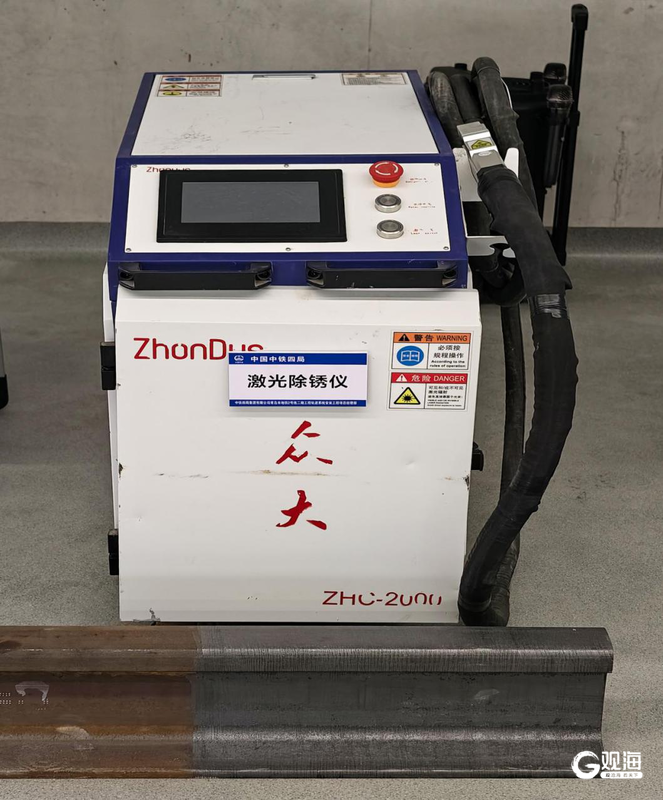 钢轨除锈现场,手持式激光清洗机全程无粉尘、无污染,既不损伤钢轨,又保障施工人员健康,彻底改变了传统喷砂除锈“灰头土脸”的现状,得到工人师傅们的广泛认可。