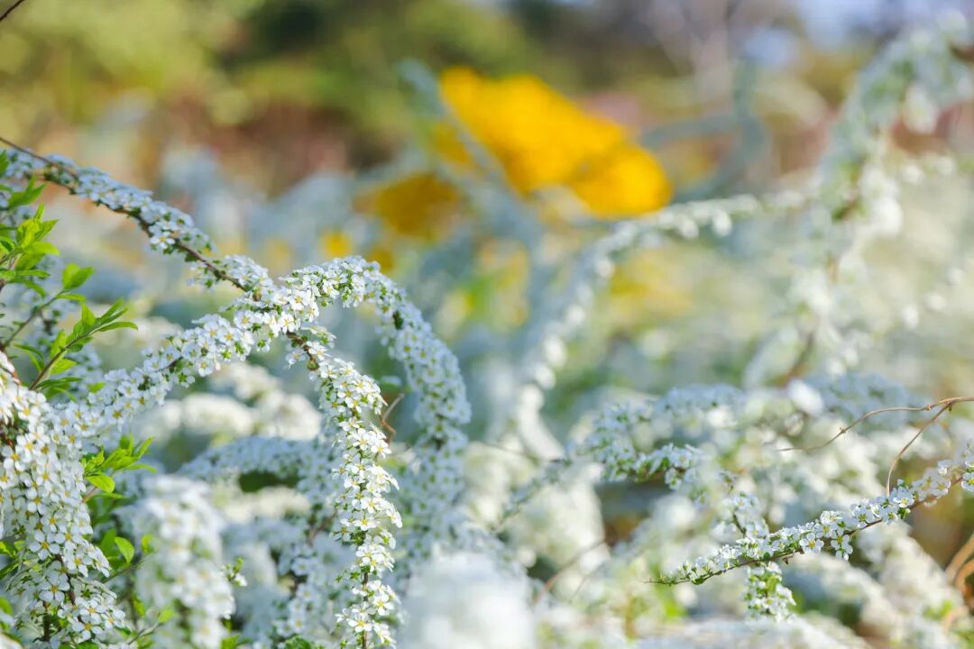 细碎的白色花瓣缀满枝头