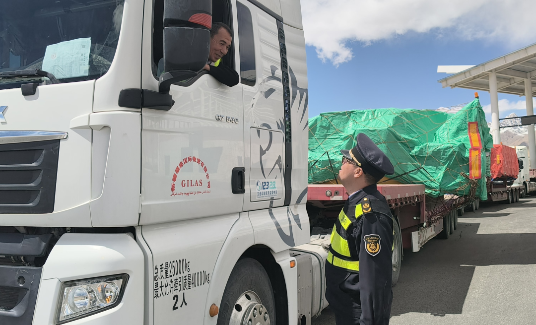 红其拉甫口岸作为中巴唯一陆路通道、中巴经济走廊的咽喉要地。红其拉甫口岸国际道路运输管理局提前谋划、精准施策,优化通关流程、开通专属通道,并联合海关、边检等部门全程护航,执法人员随行保障,确保运输安全高效。