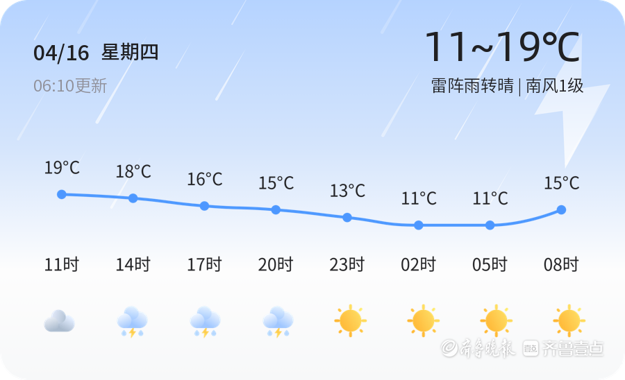 今天是4月16日,星期四,农历二月廿九。德州市今日天气为雷阵雨转晴,气温介于11℃至19℃之间,南风1级,空气湿度72%。空气质量状况为良好,PM2.5指数为68,适合市民户外活动。市民出行时可携带雨具,注意防范雷阵雨天气带来的不便。建议市民根据天气变化适时增减衣物,保持健康体魄。未来三天,德州市天气以晴到多云为主,气温逐渐回升。4月17日,晴天,气温15℃至25℃,南风3-4级;4月18日,晴天,气温15℃至28℃,南风4-5级转3-4级;4月19日,阴转小雨,气温10℃至25℃,南风4-5级转东北风3-4级。建议市民及时关注天气变化,合理安排出行计划。特别是周末有阴雨天气,市民需注意防风防雨。温馨提示