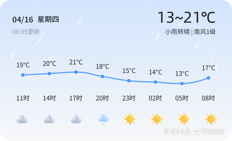 今天是4月16日,星期四,农历二月廿九。泰安市今日天气为小雨转晴,气温在13℃至21℃之间,南风1级,空气湿度67%,空气质量良好(PM2.5为70)。市民朋友们出行请注意携带雨具,雨天路滑,驾车请减速慢行,确保安全。预计上午小雨逐渐转晴,午后阳光明媚,适合户外活动。