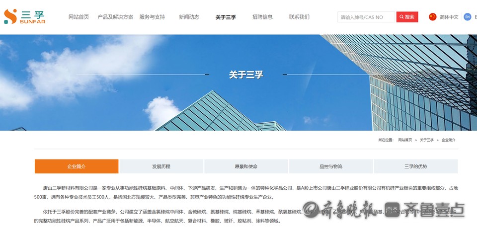 唐山三孚新材料有限公司是一家专业从事功能性硅烷基础原料、中间体、下游产品研发、生产和销售为一体的特种化学品公司,是A股上市公司三孚股份( 603938.SH)有机硅产业板块的重要组成部分,占地500亩,拥有各种专业技术员工500人,是我国北方规模较大、产品类型完善、兼具产业特色的功能性硅烷专业生产企业。