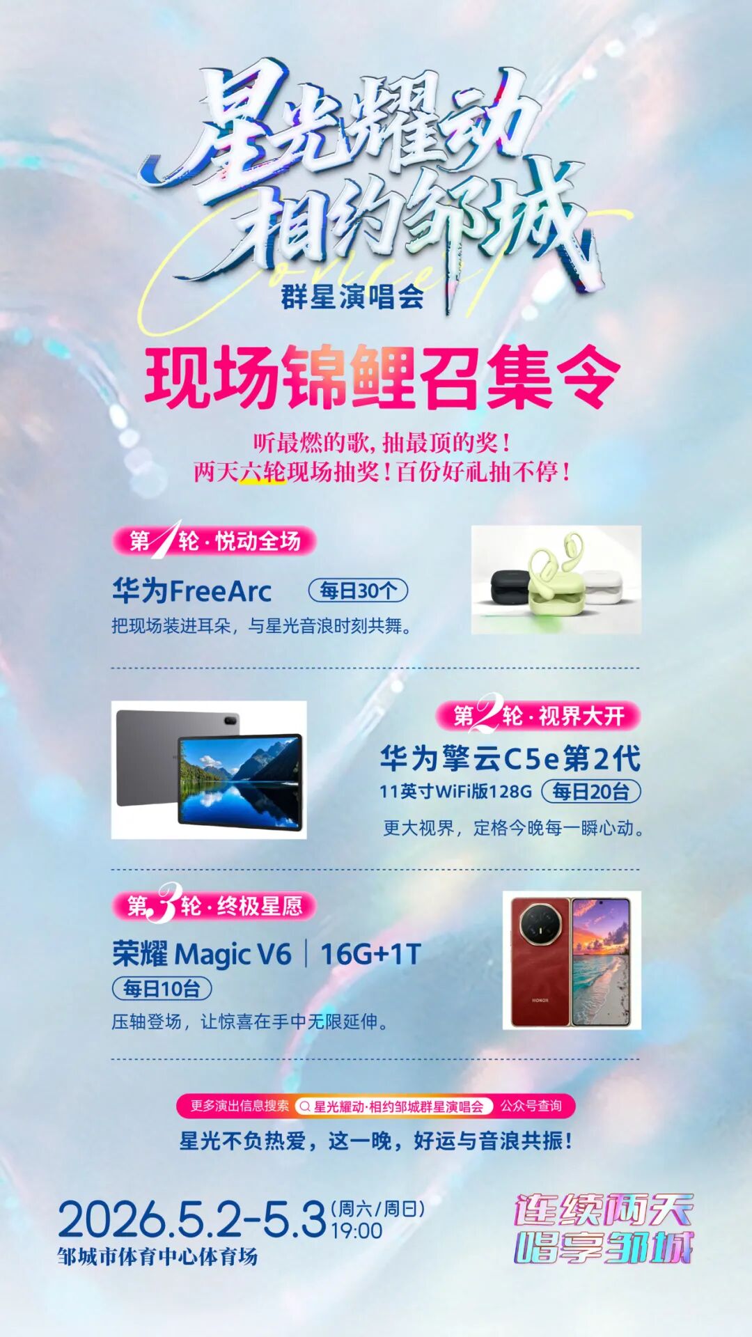锦鲤召集!买票来听演唱会,荣耀折叠屏、华为数码壕礼狂抽不停!