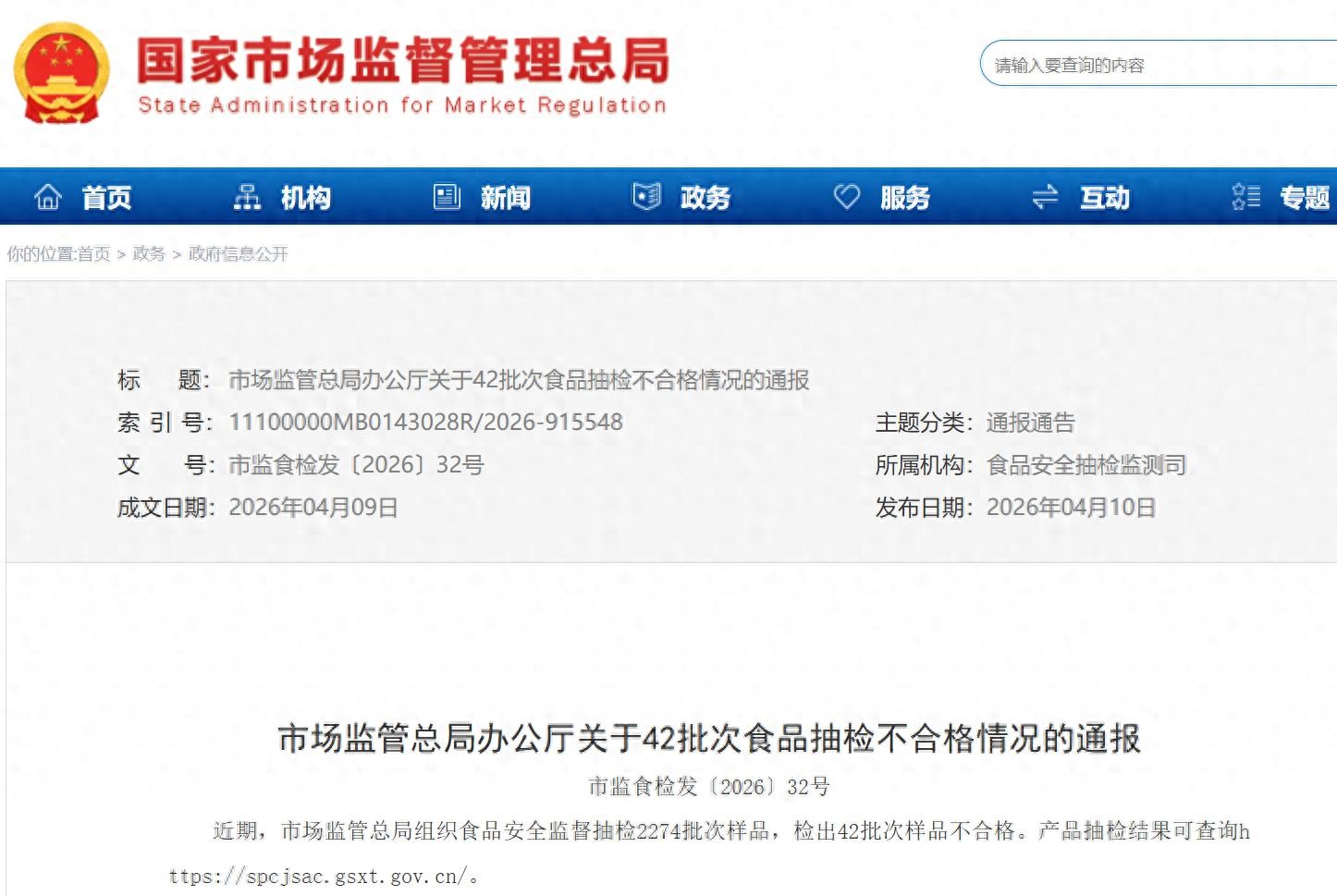 值得注意的是,市场监管总局近期组织食品安全监督抽检2274批次样品,检出42批次样品不合格。