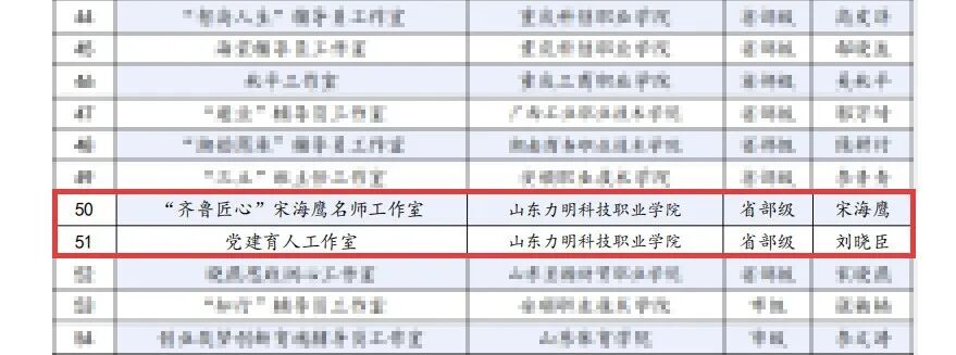 山东力明科技职业学院两个工作室入选全国第五批省部级联建共建名单