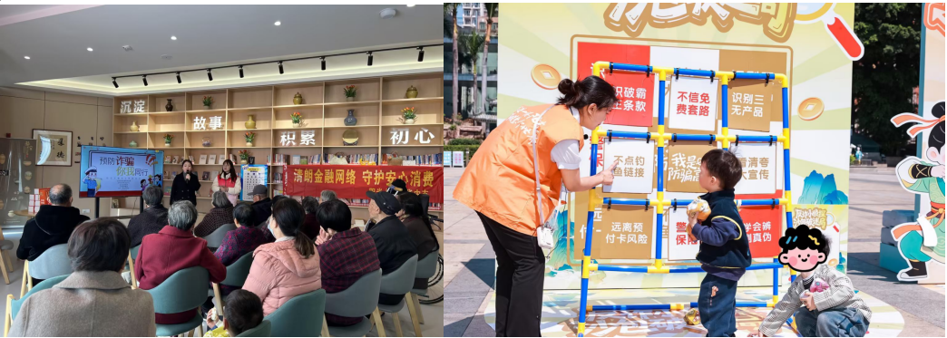 银发守护更贴心。阳光保险各地机构走进养老院、老年大学、社区养老中心,开展方言宣讲、数字反诈陪练、入户防骗提醒,重点揭露 “代理退保”“养老投资骗局”“保本高息理财”等陷阱。阳光人寿江苏分公司联合同业揭牌“金融消费教育示范基地”,用爱心义剪、老歌传唱等形式陪伴老人;金华中支走进老年大学开展“以案说险”微课堂,台州中支则以“进社区+进家庭”模式守护群众“养老钱”。阳光财险广东分公司推出粤语版视频与拼图游戏,寓教于乐,守护银发生活。