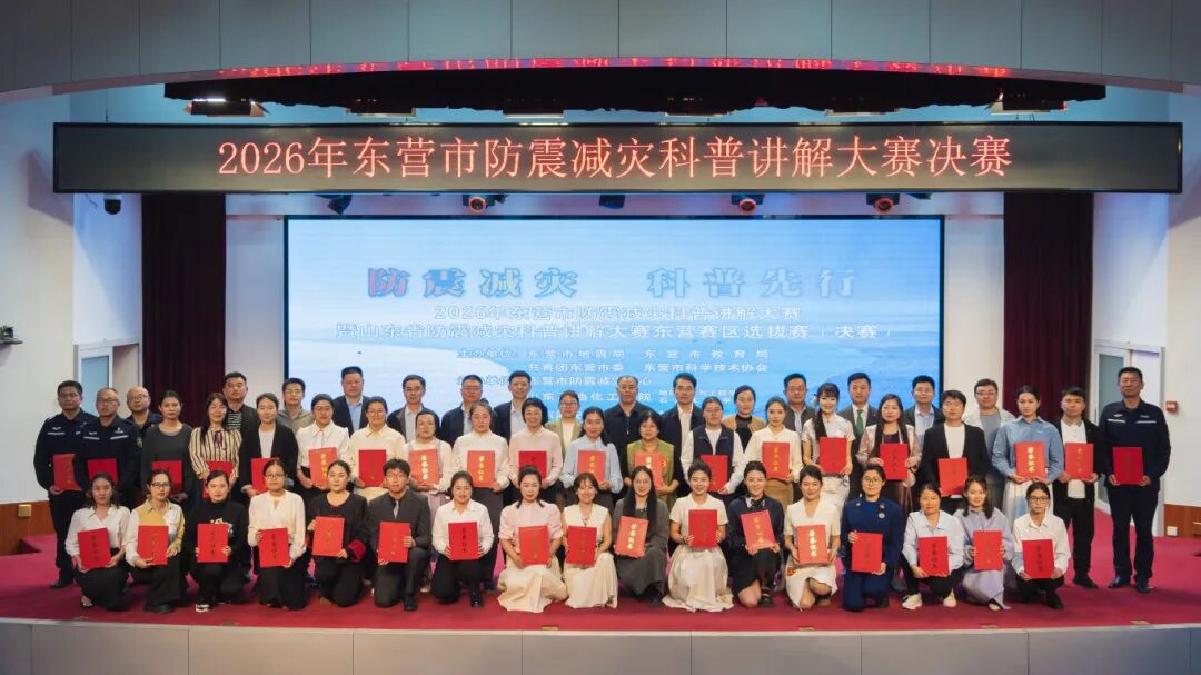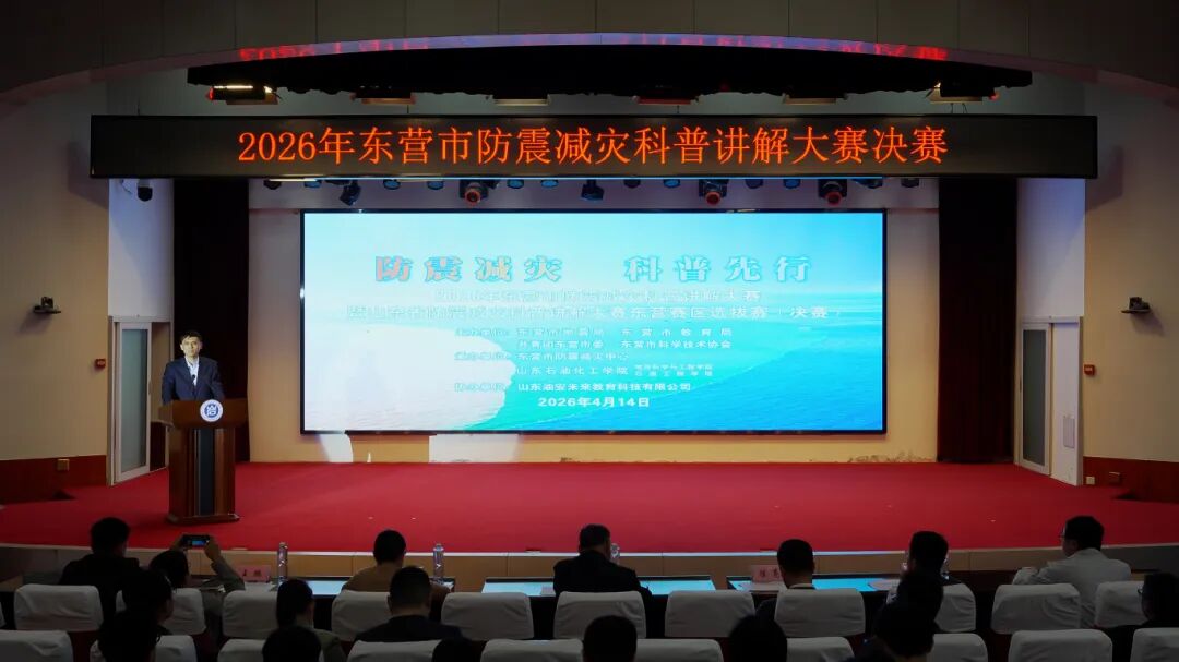 4月14日下午,2026年东营市防震减灾科普讲解大赛决赛在山东石油化工学院100号报告厅隆重举办,赛事圆满落幕。