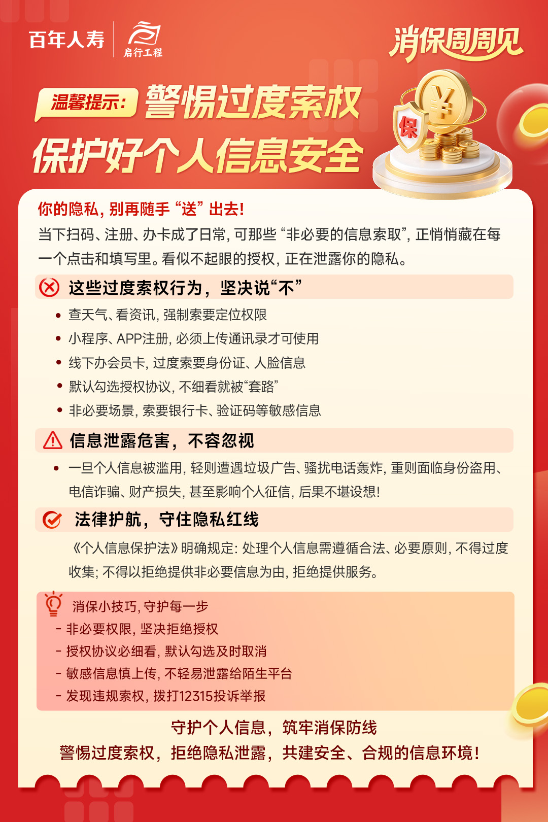百年人寿山东分公司消保小贴士|警惕过度索权,保护好个人信息安全大众报业·齐鲁壹点 2026-04-16 10:59:03您的隐私别随手“送”出去!查天气要定位、注册要通讯录?对这些过度索权要坚决说“不”,一起守好钱袋子责任编辑:胡晓娟