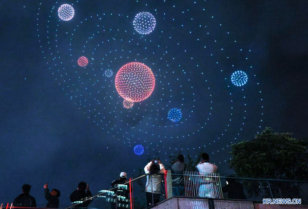 中 구이양 밤하늘에 펼쳐진 드론 라이트쇼