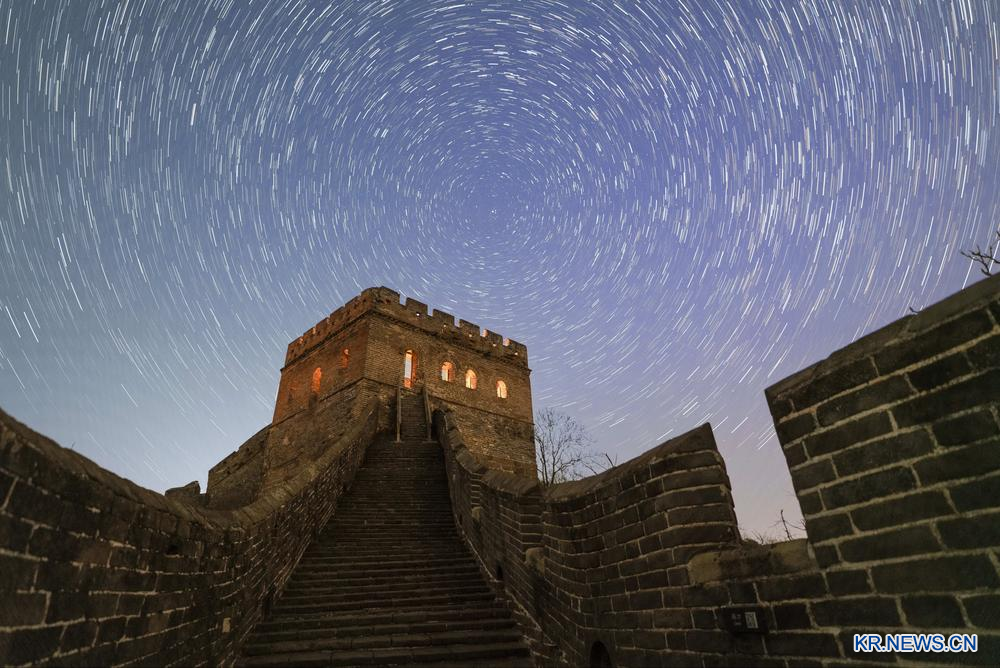 이날 별빛으로 가득 찬 진산링 만리장성의 밤하늘을 스태킹 기법으로 연출했다. 2026.4.15