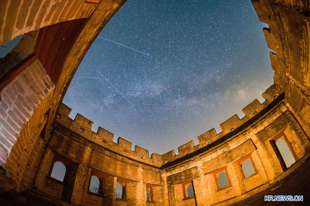 이날 진산링 만리장성의 밤하늘에 별빛이 쏟아지며 아름다운 풍경이 연출됐다. 2026.4.15