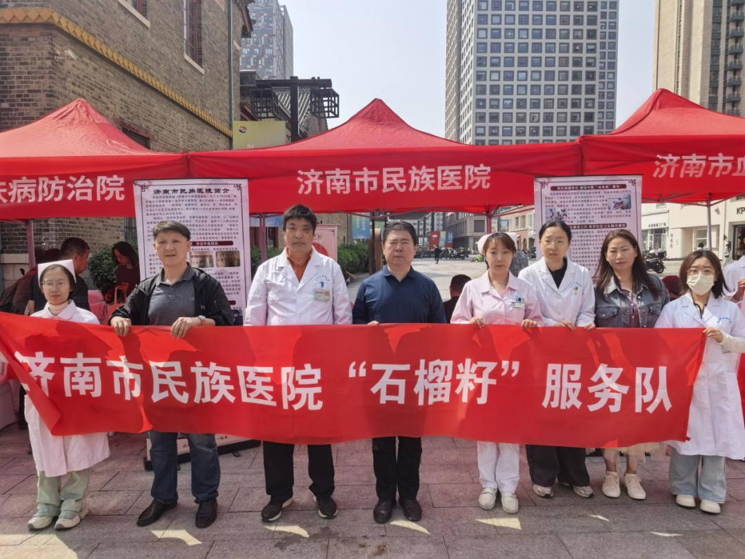济南市民族医院“石榴籽”服务队参加爱国卫生月现场宣传活动