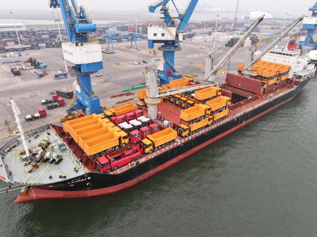 上百辆工程车同时出海?潍坊港:装得下,稳得住,破纪录了!