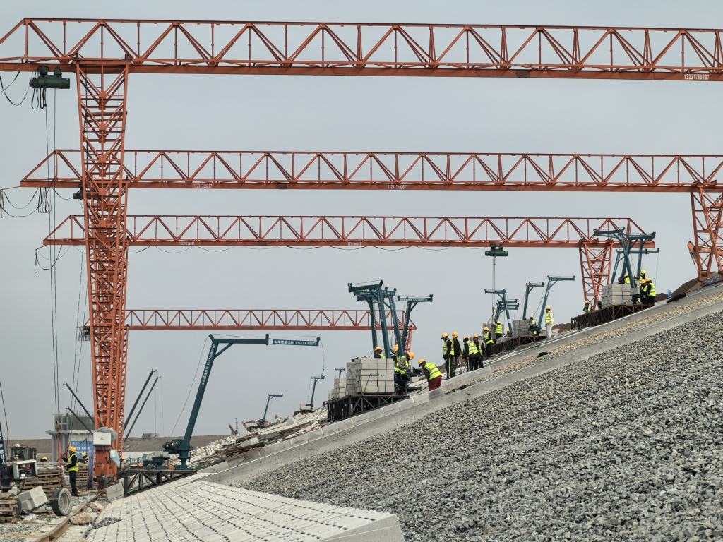 官路水库围坝护坡施工现场