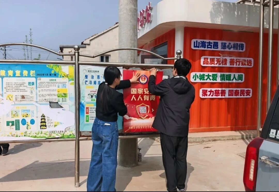 志愿者结合农村实际,用通俗易懂的语言现场解答群众关于防范电信网络诈骗、保护个人信息安全等疑问,主动与群众拉家常、讲案例,提醒大家警惕身边可能存在的安全隐患。此外,工作人员在镇便民服务大厅公告栏、农村公开栏、集市墙面等醒目位置张贴国家安全主题宣传海报,让“国家安全、人人有责”的观念更加深入人心。