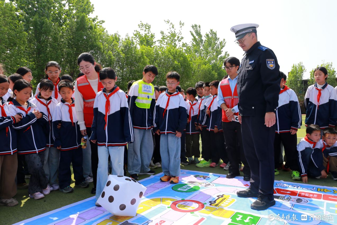 操场上,宣传民警与人保工作人员为同学们开展各类交通指示牌专题讲解,通过互动提问的方式,帮助同学们真正看懂、读懂交通信号,养成“看标识、守规则”的出行习惯。将交通规则知识点融入飞行棋,同学们分组参与、轮流前行,每一步落点都对应一次安全知识问答或情景判断,在趣味体验中,潜移默化养成文明出行的习惯。同时,民辅警开展车辆盲区模拟实验,直观展示车辆存在的“视觉盲区”,孩子们近距离观察、亲身体验,真切感受到盲区带来的致命危害,深刻理解“远离车辆盲区、保持安全距离”的重要性,进一步增强了对出行风险的认知与防范能力。