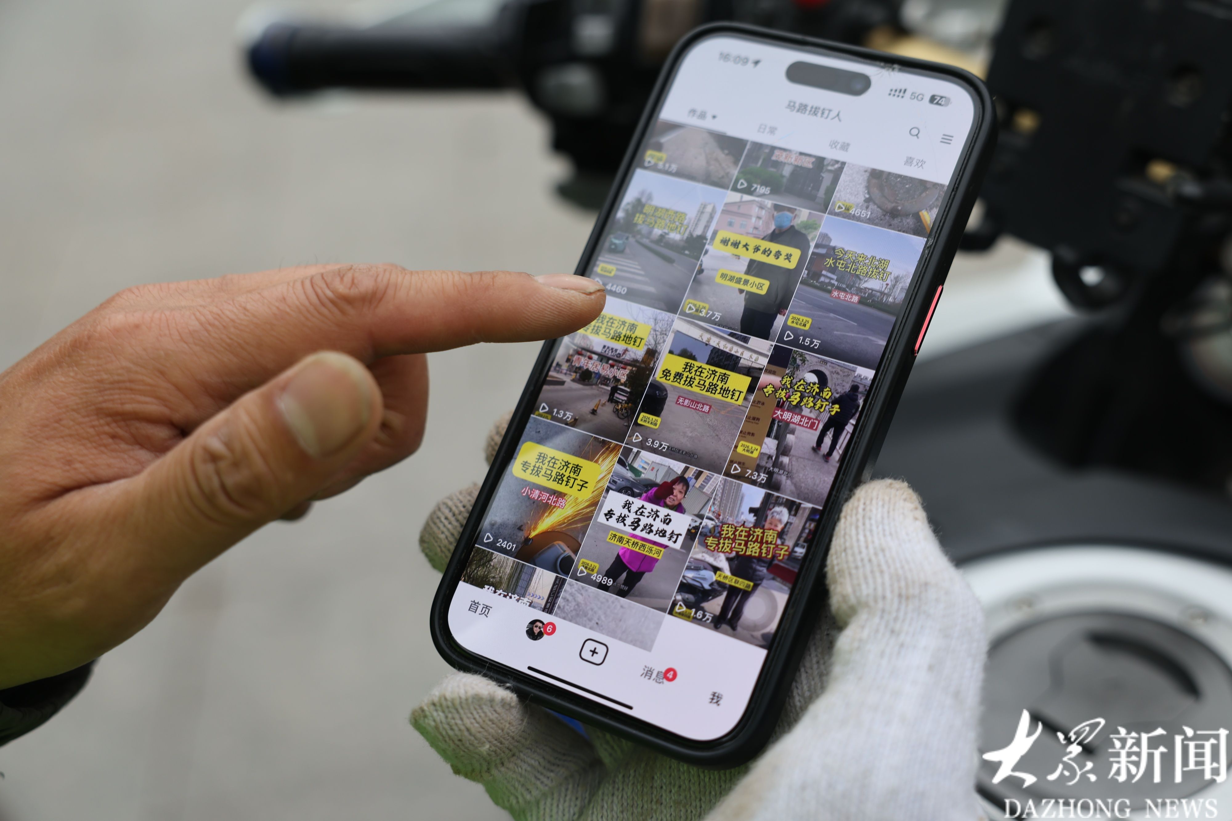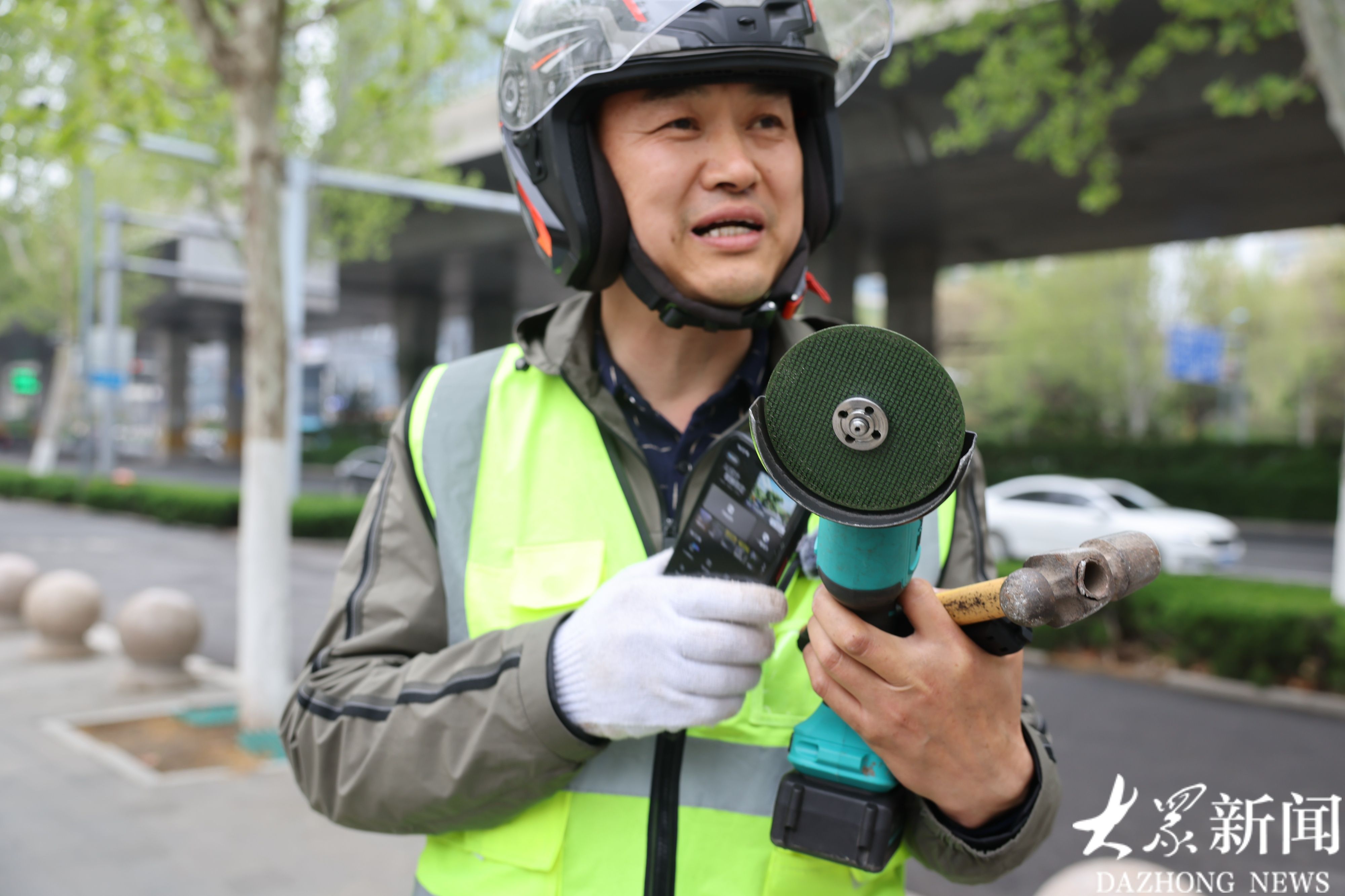 于是,宋大哥下定决心,瞒着妻子和家人,自费几百元钱购置了角磨机、锤子等工具,从今年3月开始,他穿上反光背心,骑着摩托车在济南的大街小巷“拔钉”清障。