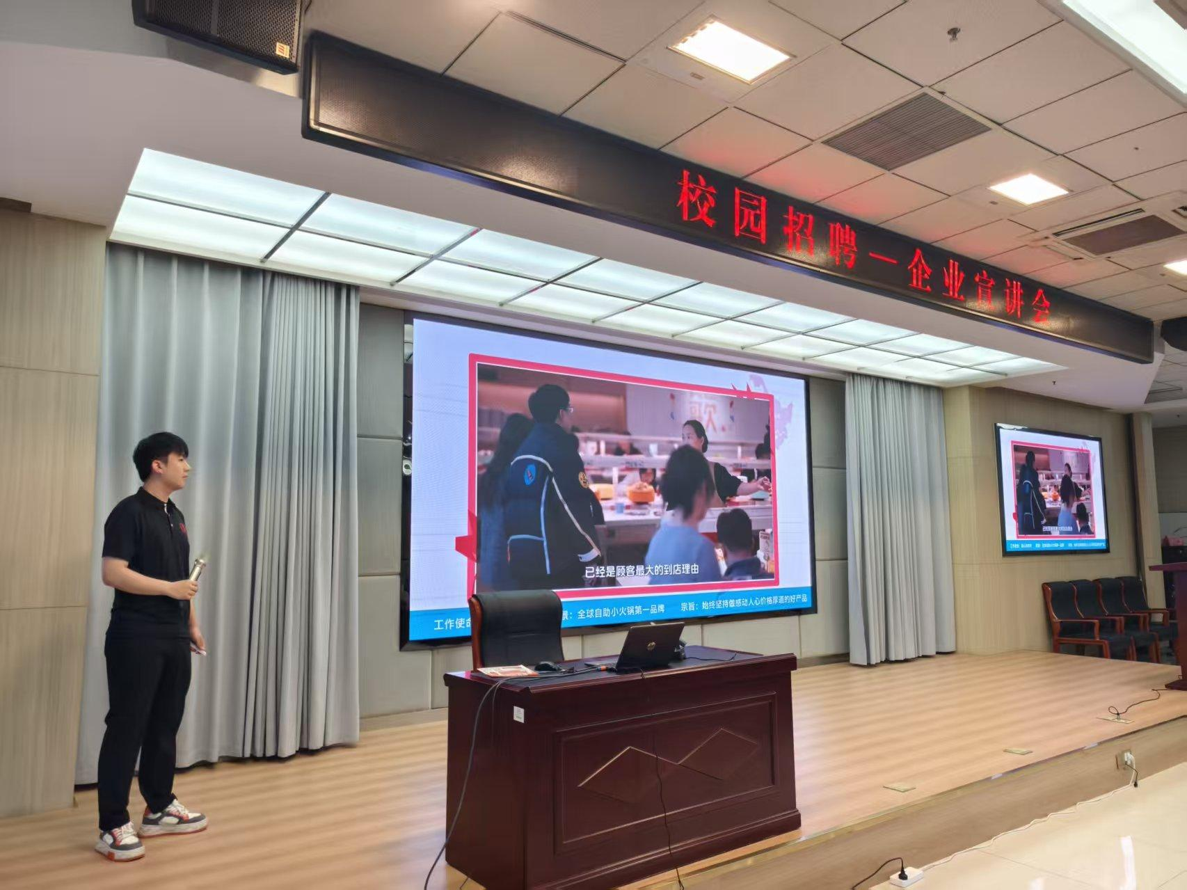 宣讲会前,学院党委委员、纪委书记、监察专员闫博与公司校招负责人开展座谈交流,农学系负责人、中层干部及各教研室主任参加座谈。闫博对企业一行的到来表示热烈欢迎,并介绍了办学特色、人才培养理念及农学系专业建设成果与育人优势。他强调,校企合作对提升学生实践能力、推动职业教育高质量发展的重要作用。食品智能加工技术、食品检验检测技术专业与餐饮行业发展联系紧密,希望以此次宣讲会为契机,深化人才培养、实习实训、就业输送等方面合作,实现校企优势互补、互利共赢。公司校招负责人介绍了企业发展情况、行业布局及人才需求,表达了吸纳人才的积极意愿。
