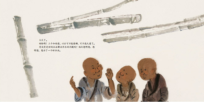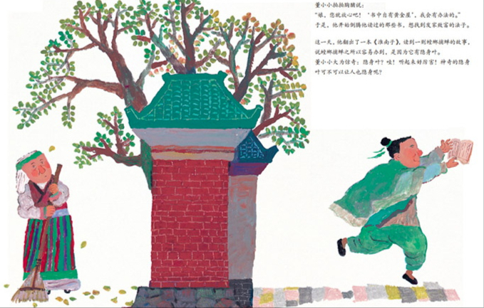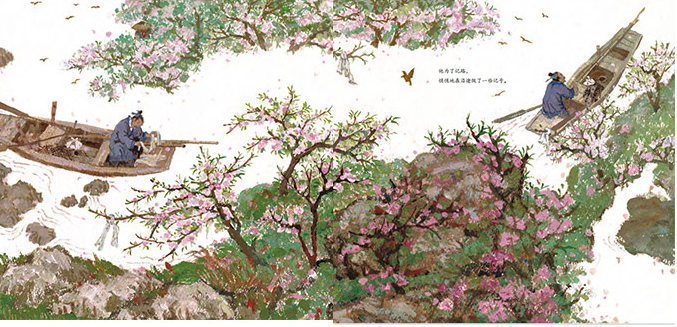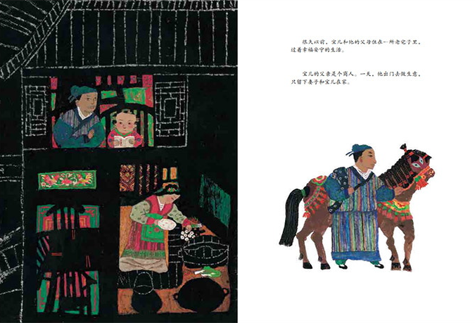 《宝儿》的黑红对比、《桃花源的故事》的空灵留白、《花木兰》的厚重肃穆、《三个和尚》的简约水墨等,都给读者留下独特的记忆点。蔡皋的画风被称为是“东方意境+民间质朴+现代表达”的完美融合。