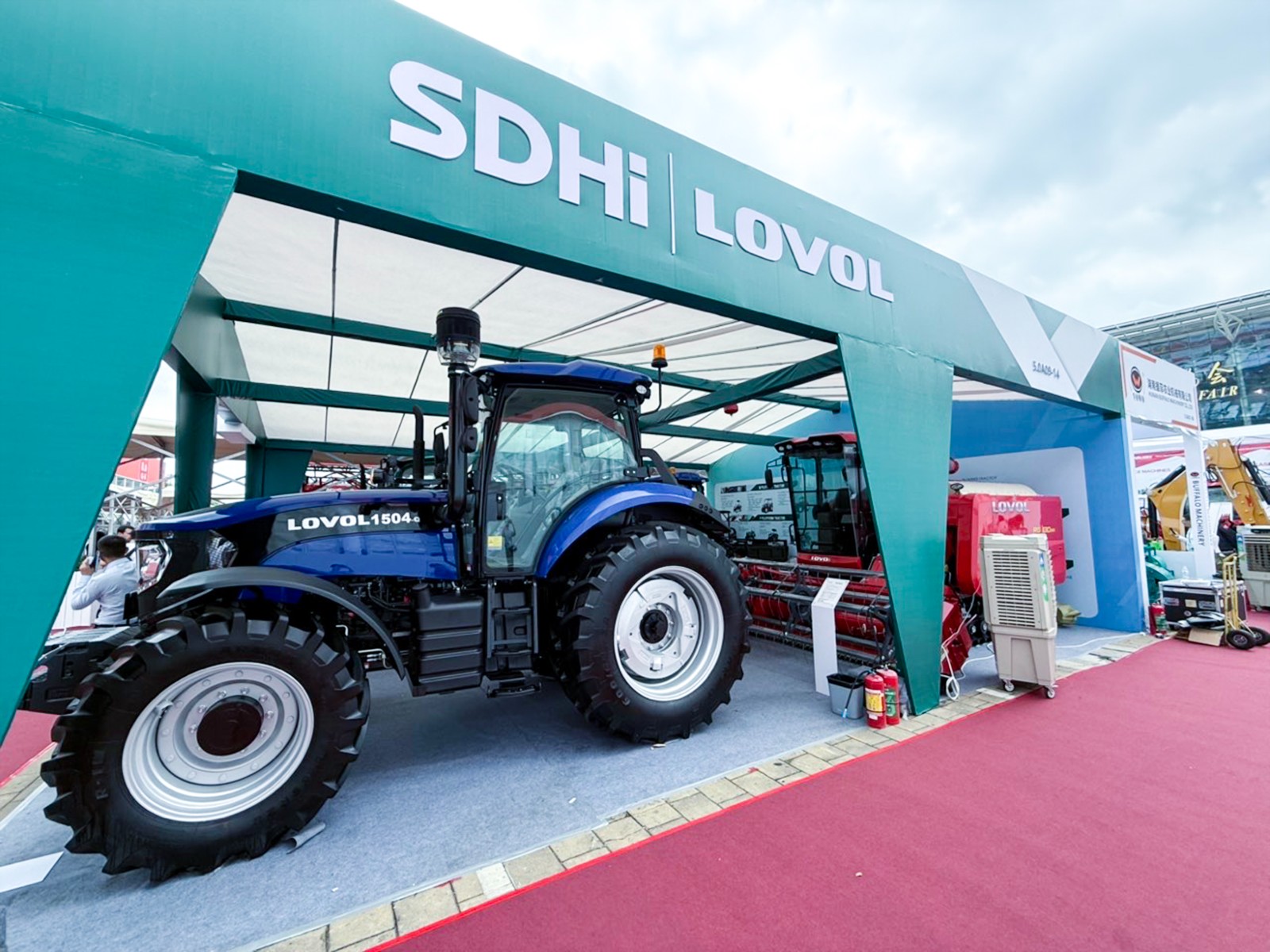 在拖拉机展区,雷沃TE404、TH754、TQ1504及P4000等机型拖拉机依次展示,全面覆盖从轻巧灵活到强劲高效的不同马力需求。