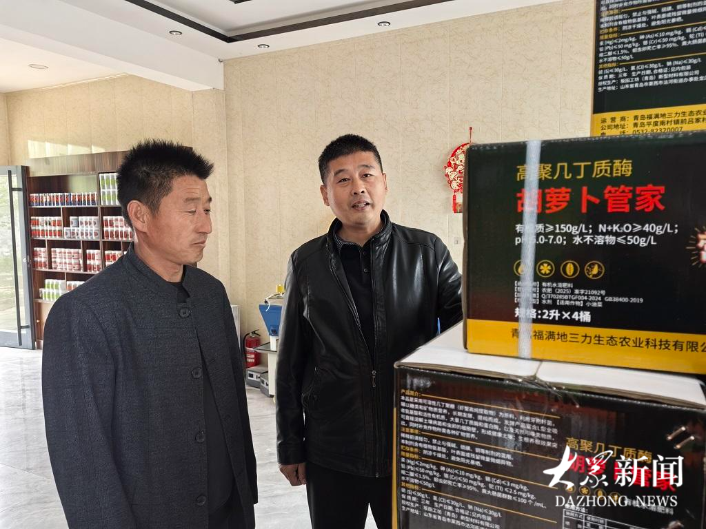 刘胜喜(左)和李西年种植胡萝卜用的是他们自己定制的专用肥料。