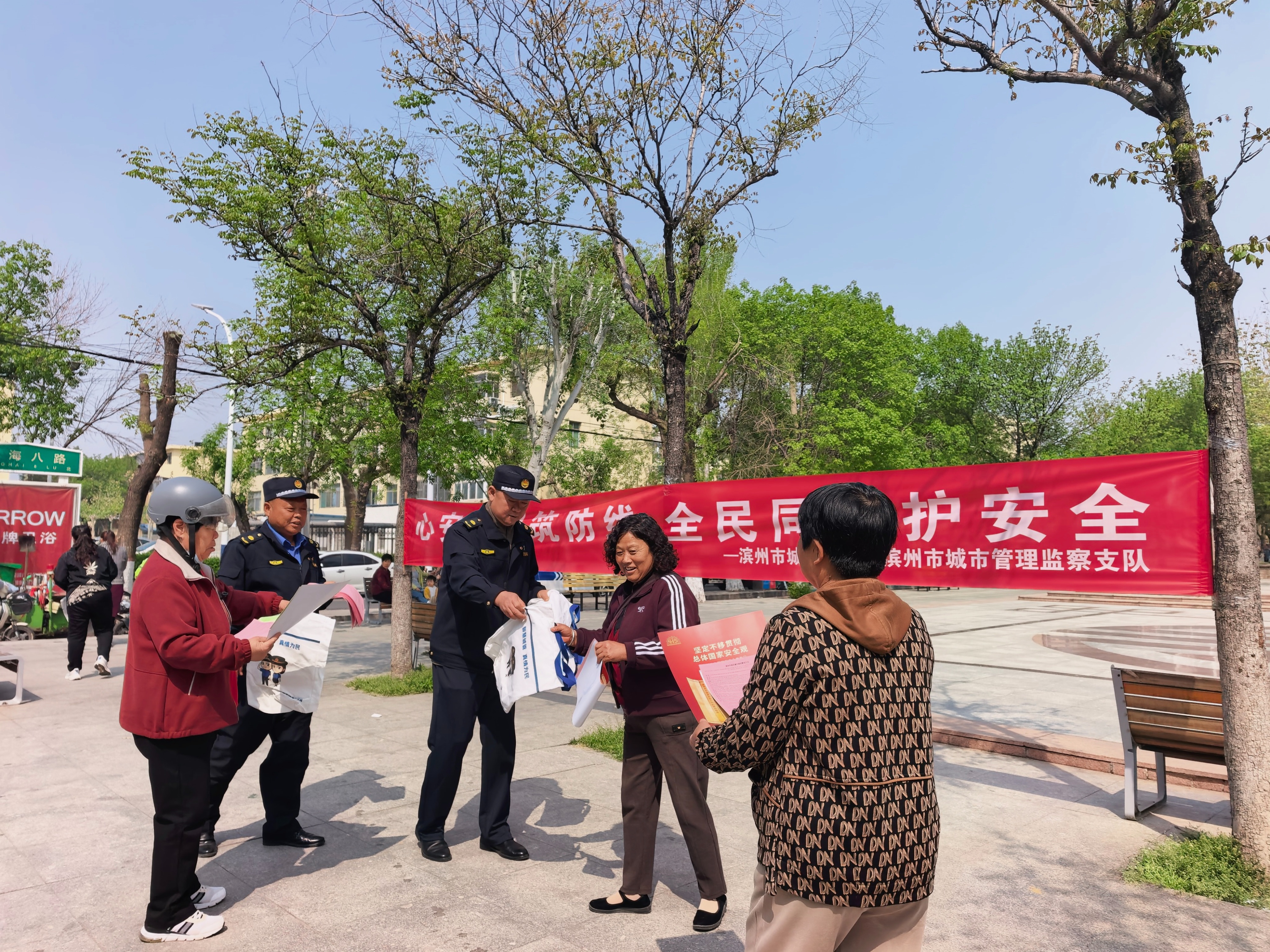 4月15日,在第十一个全民国家安全教育日到来之际,滨州市城市管理监察支队在重阳广场开展全民国家安全教育日普法宣传活动,面向市民普及国家安全法律法规,进一步提升群众安全防范意识,营造全社会共同维护国家安全的浓厚氛围。