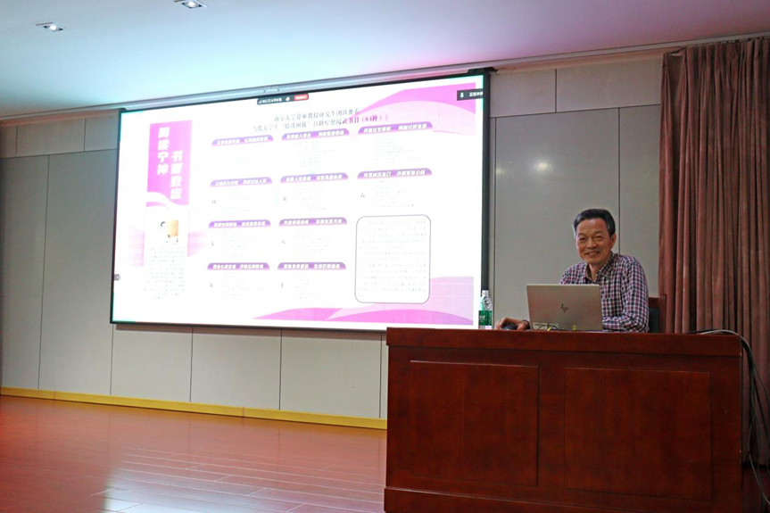 中外经典读物与大学生“情绪疗愈”阅读分享会由图书馆副馆长王涛主持,徐雁教授以“爱读书,爱自己,爱未来”为主题,阐释了“人生幸福感”四要素,提出“发展性书目疗法”。结合实际案例,推荐了《柳林风声》《蛤蟆先生去看心理医生》等适合大学生的疗愈读物,并重点介绍了其团队研究成果——《当代大学生“情绪困扰”自助疗愈阅读书目(84种)》,为不同情绪困扰的同学提供个性化“书方子”,引导同学们树立正向积极的阅读观。互动环节,同学们围绕碎片化阅读、情绪疏导和书目阅读感悟等问题积极提问,徐雁教授耐心解答并给出切实建议。现场还布置了疗愈书单主题展架,方便同学们即时借阅。