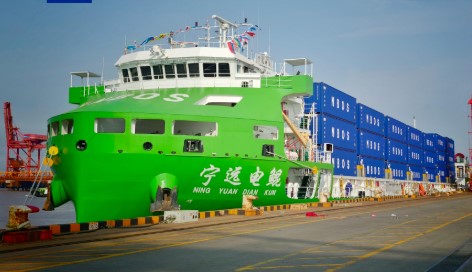 中国初の1万トン級純電気駆動スマートコンテナ船「寧遠電鯤」
