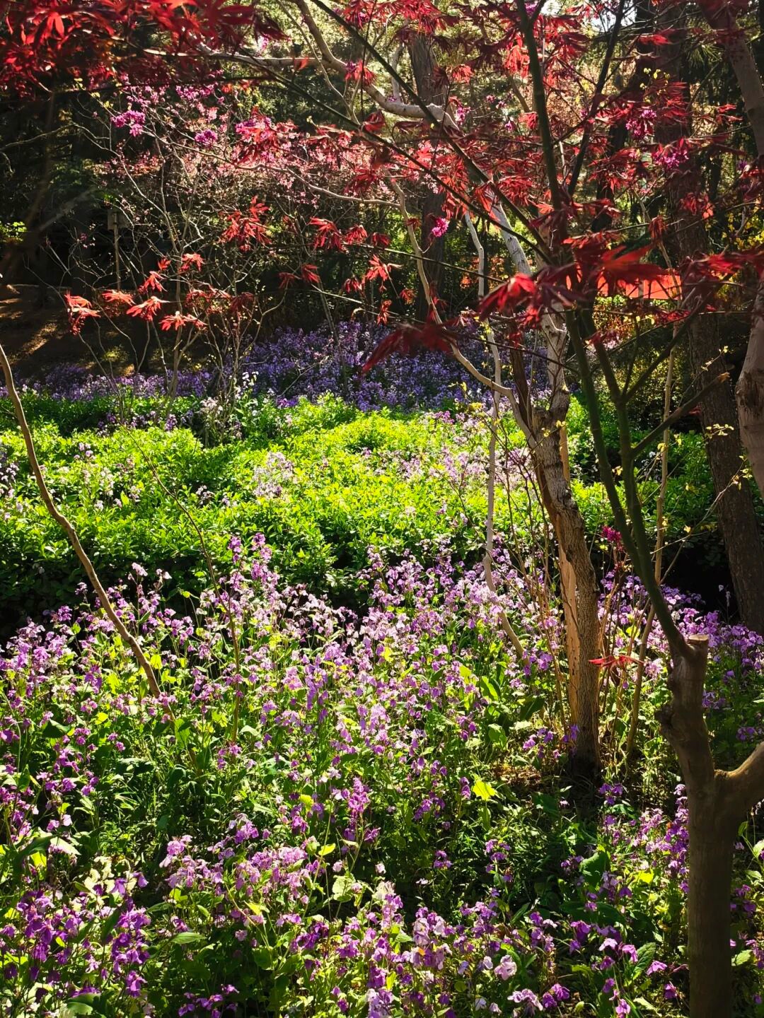 走进嘉定山公园,大片二月兰竞相绽放,蓝紫色小花铺满林下空地,形成壮观的“紫色花海”。清风拂过,花海摇曳生姿,花香清甜,自然野趣十足,是闹市区中难得的春日秘境。