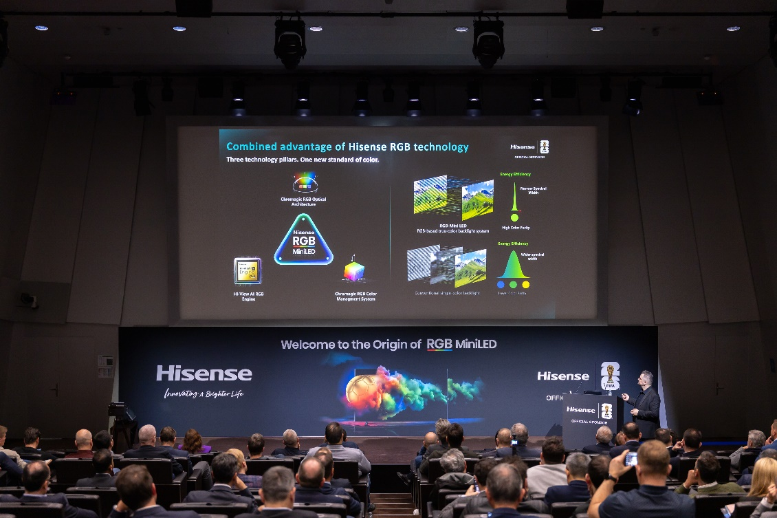 当地时间4月15日,2026世界杯全球官方赞助商海信在瑞士国际足联(FIFA)总部举办发布会,正式面向全球市场推出RGB-Mini LED电视2026系列。此次新品不仅在色彩准确性、亮度控制与细节呈现上实现了巅峰表现,更实现从55英寸到116英寸的主流尺寸全面覆盖,让尖端显示技术飞入寻常百姓家。