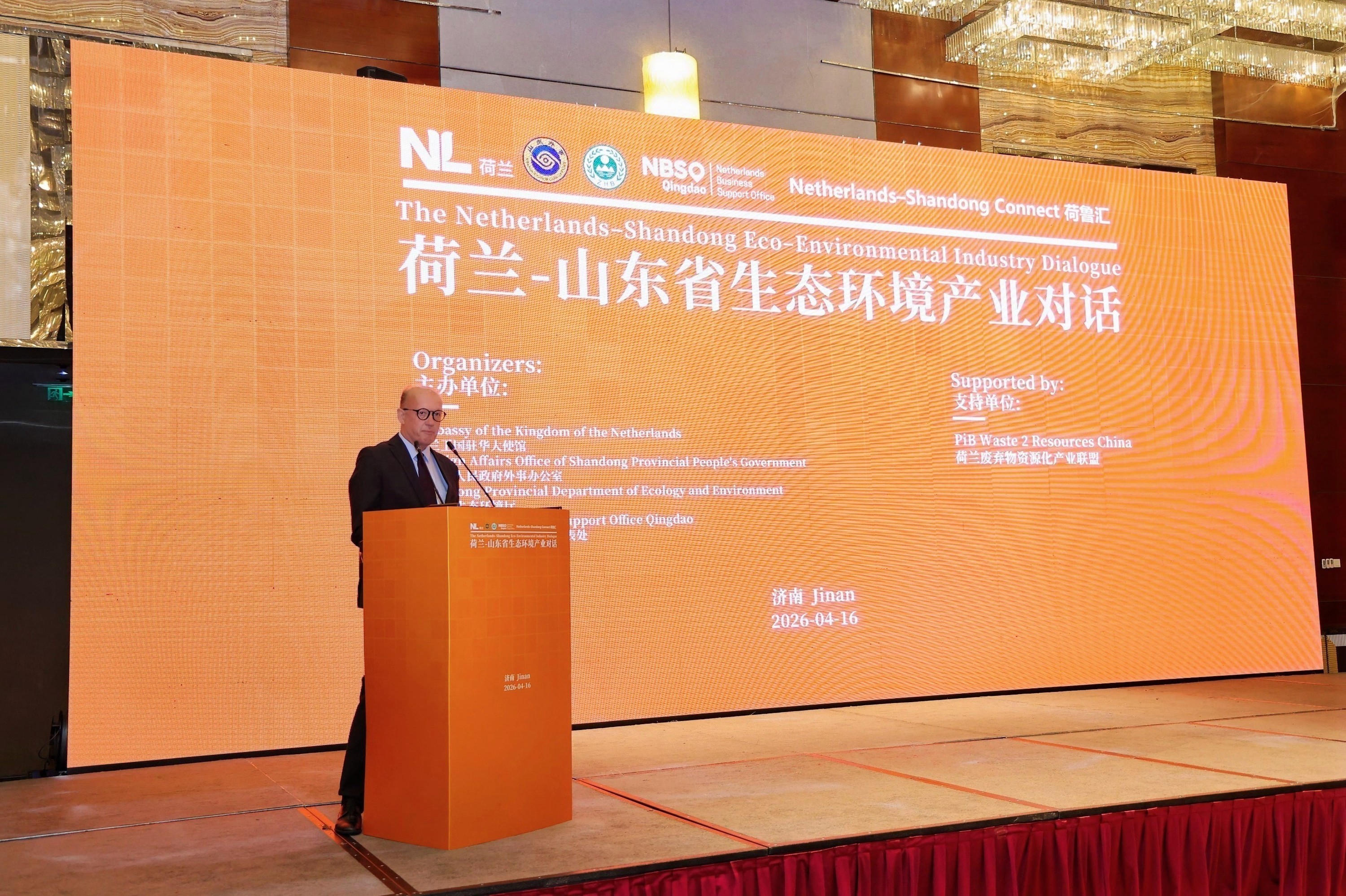 On April 16, the "Netherlands-Shandong Connect" Netherlands-Shandong Eco-Environmental Industry Dialogue was held in Jinan. The event was jointly organized by the Embassy of the Kingdom of the Netherlands, the Foreign Affairs Office of the Shandong Provincial People's Government, the Shandong Provincial Department of Ecology and Environment, and the Netherlands Business Support Office Qingdao, supported by PiB Waste 2 Resources China. Focusing on circular economy, resource utilization of waste, water management, and environmental protection technologies, the dialogue marked a new milestone in Shandong-Netherlands cooperation in green, low-carbon, and sustainable development, adding a solid "ecological foundation" to the Netherlands-Shandong Industrial Cooperation Week.